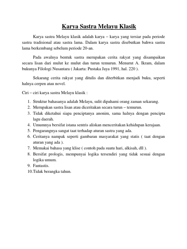 Contoh Sastra Melayu Klasik Pengertian Karakteristik Dan Contoh